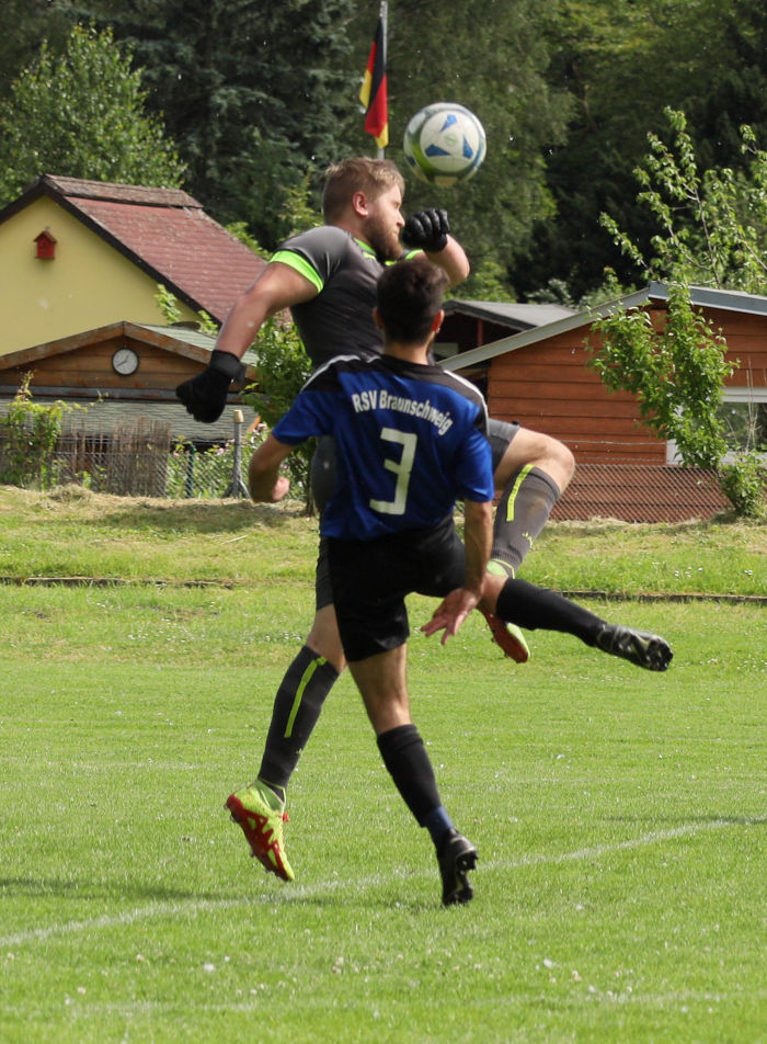 Inzwischen entwickelte sich die RSV-Sportanlage zu einem wahren Brutkasten. Den Spielern auf beiden Seiten war die zermürbende Pause unter der strahlenden Sonne anzumerken. Es schlichen sich Unkonzentriertheiten ein, die teilweise auch zu Frust führten.