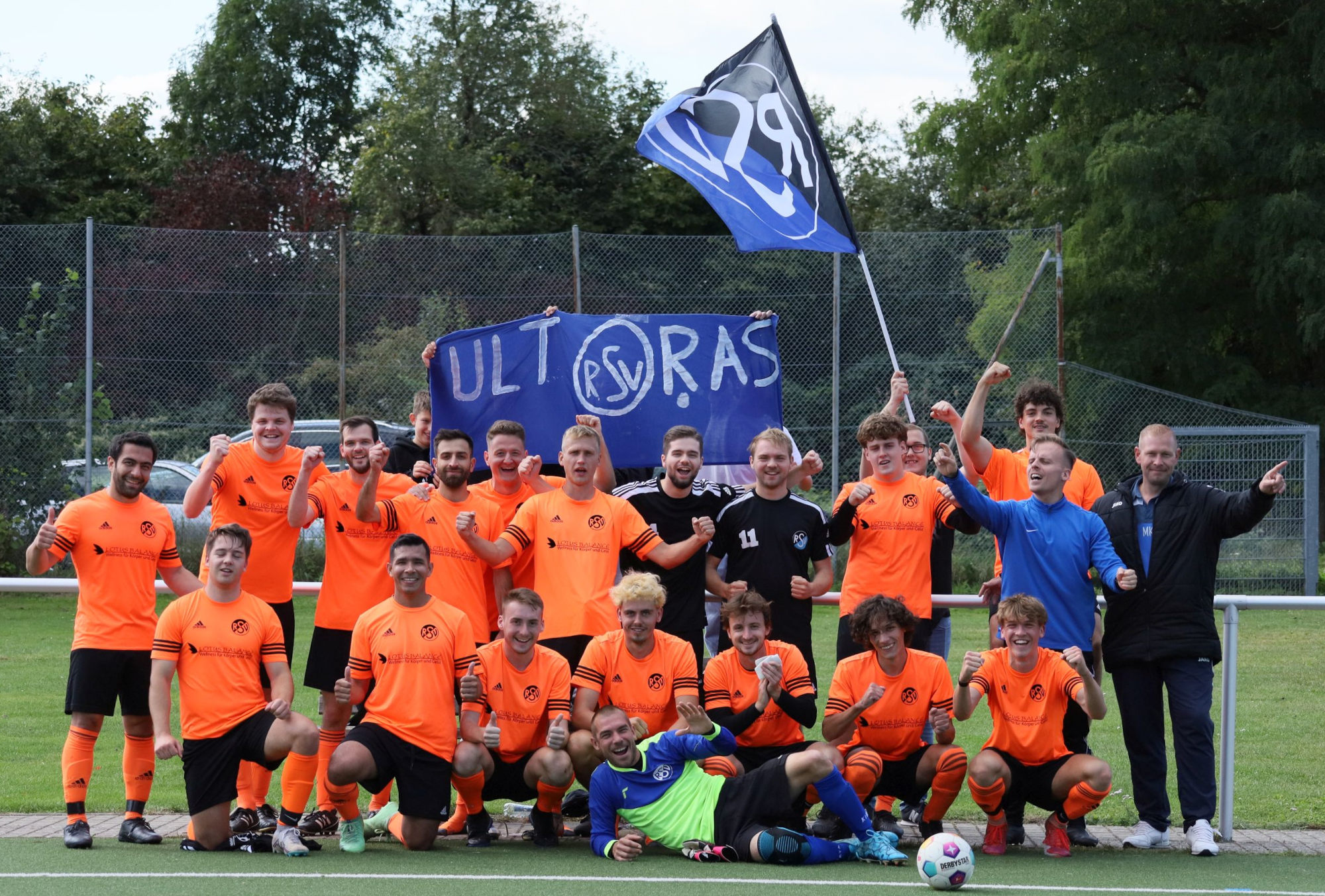 Das Siegerteam mit den Fans nach dem 4:0-Sieg