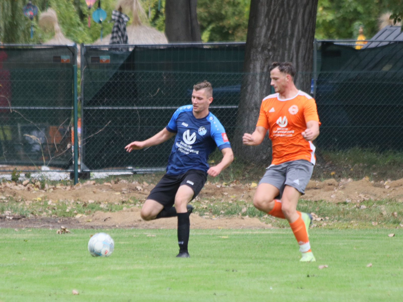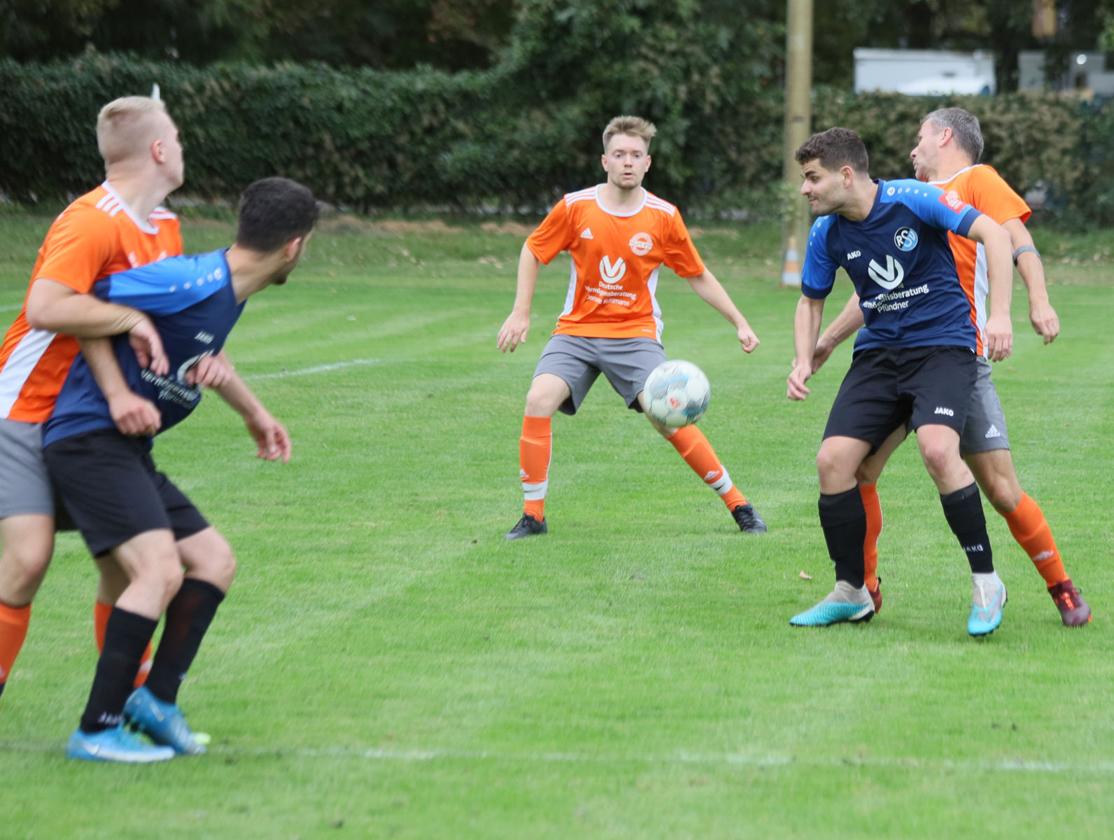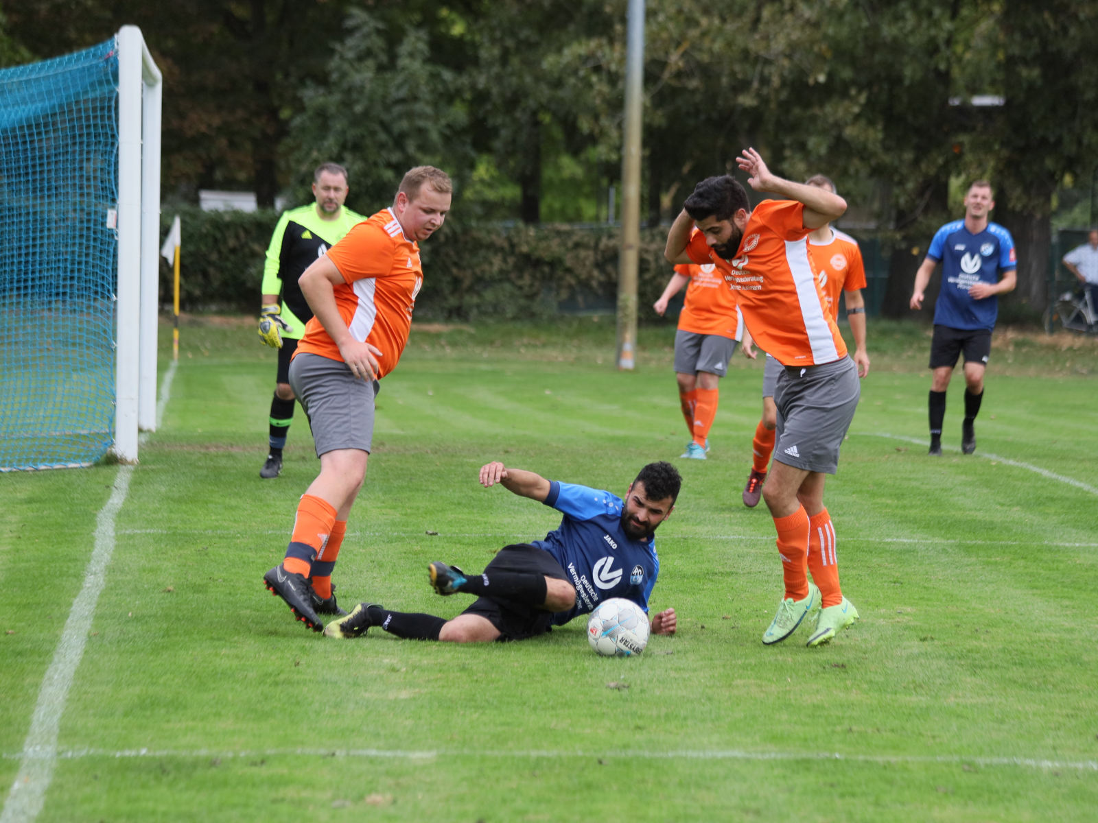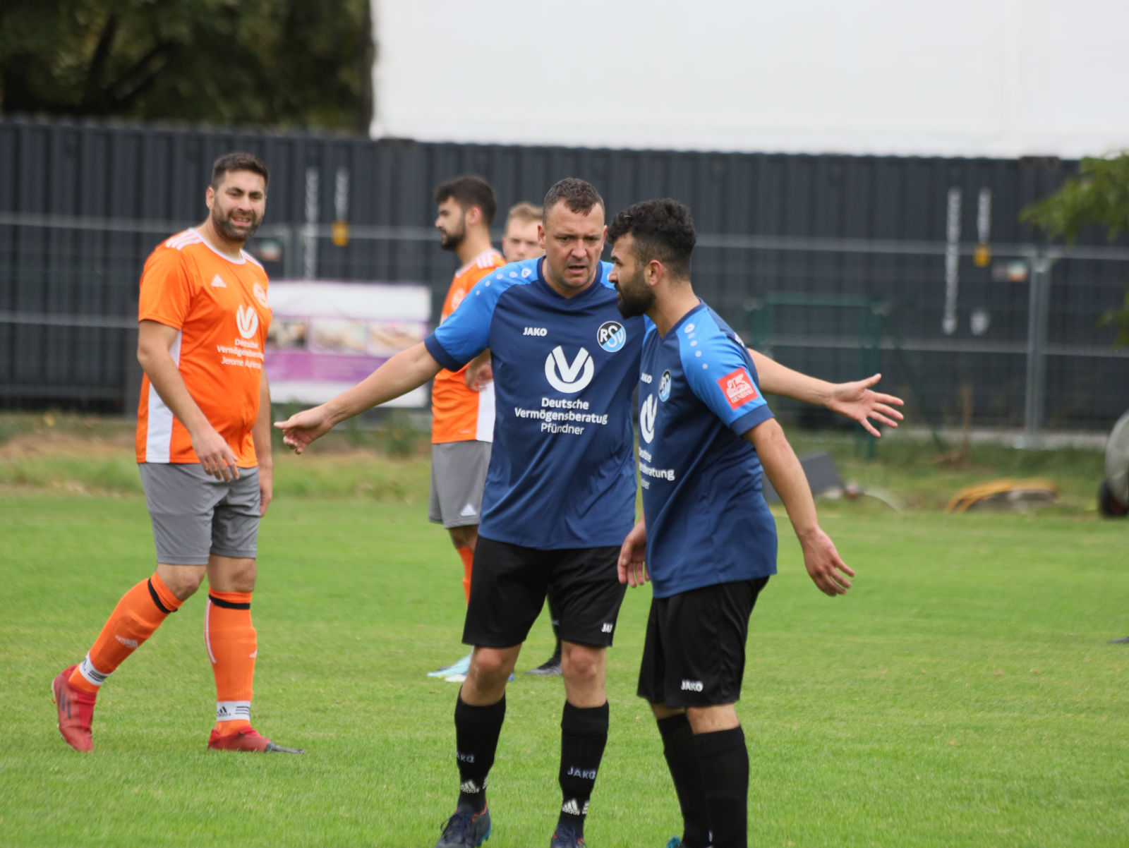 Nach der Pause wirkten die Schwarz-Blauen bissiger und zielstrebiger. Und so vergingen nur fünf Minuten im zweiten Durchgang als Shadi Khelad im Strafraum der in orange/grau gekleideten Gäste zu Fall gebracht wurde. Den fälligen Strafstoß verwandelte Ramazan Hussein souverän zum Ausgleich.