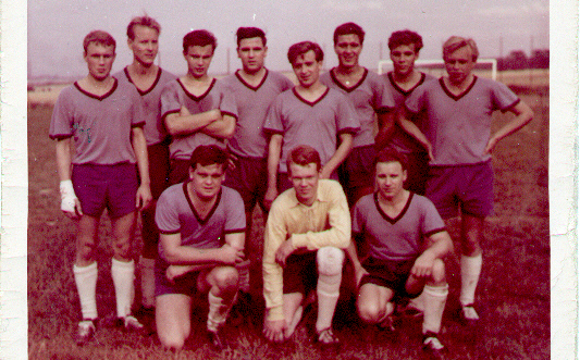 stehend: Gerd Utermöhlen, Rüdiger Knappert, Reinhold Matern, Wolf-Rüdiger Krause, Klaus Griese, Günter Koroschetz, Willi Bernal, knieend: Günter Müller, Dieter Matz, Uli Holz, Adof "Atjen" Zindler. Das Bild wurde nach dem Gewinn des Norddeutschen Eisenbahnerpokals in Börßum gemacht.