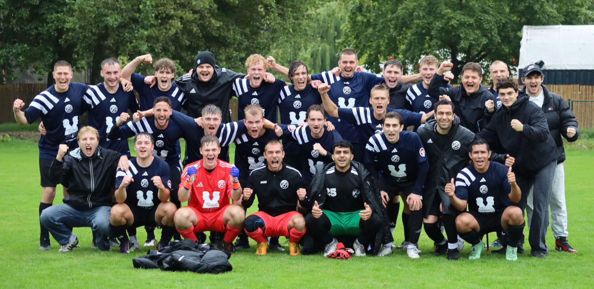 Vom Regen durchnässt, aber glücklich. Kurz zuvor wurde der SV Union Salzgitter mit 3:0 besiegt.