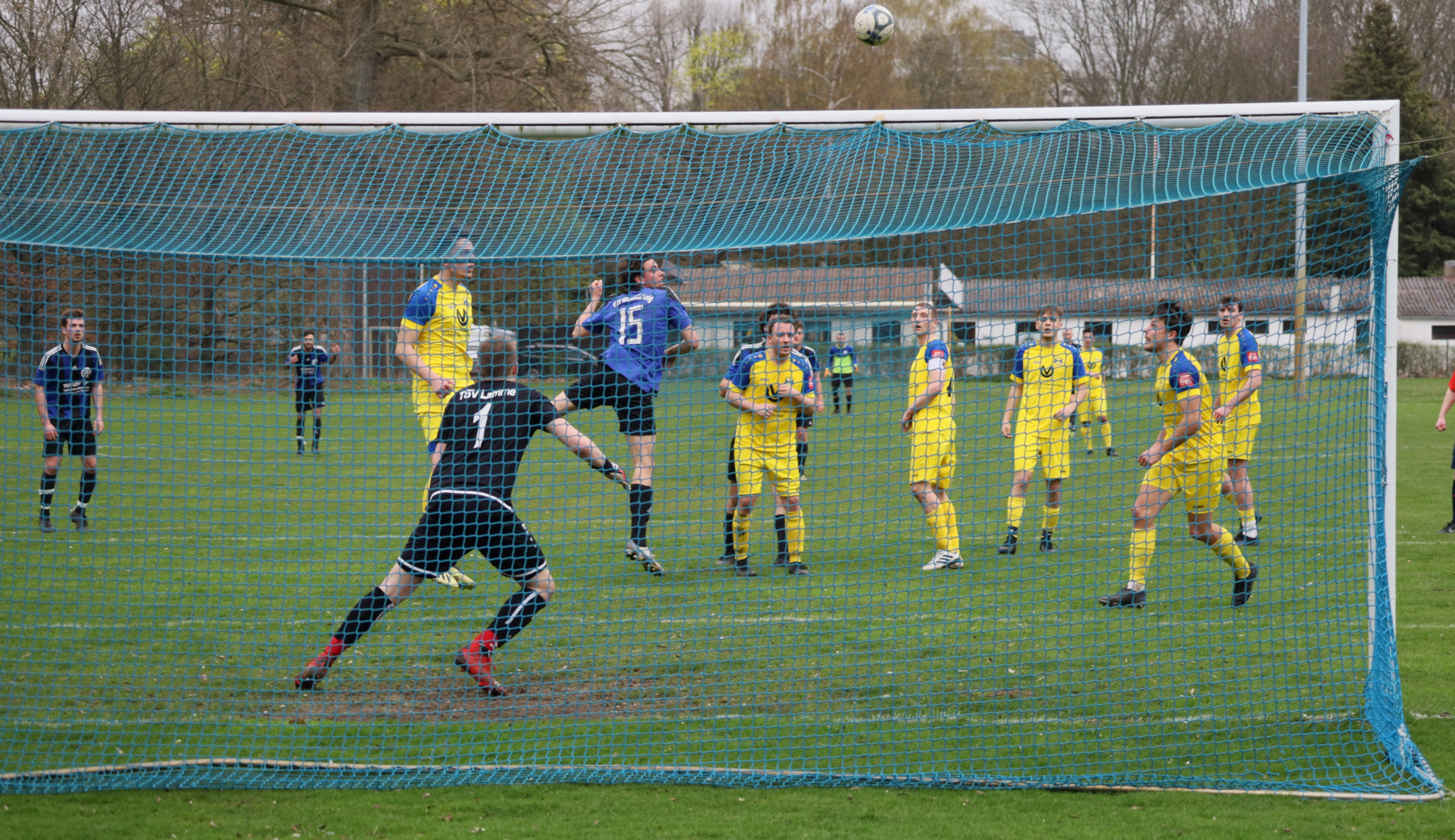 Lars Krüger mit Kopfball auf das Lammer Tor, der dieses jedoch knapp verfehlt