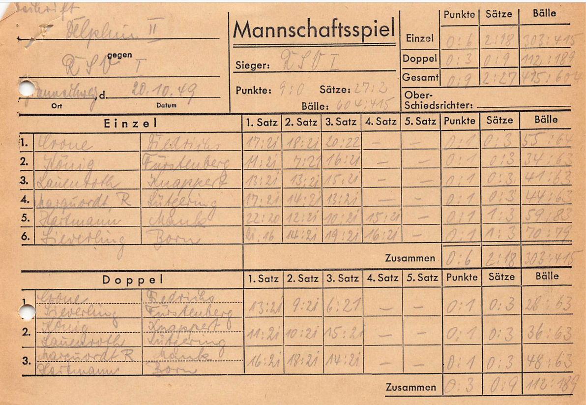 Zwei TT-Teams und eine Fußballmannschaft für die Spielzeit 1949/50 gemeldet